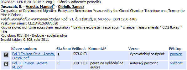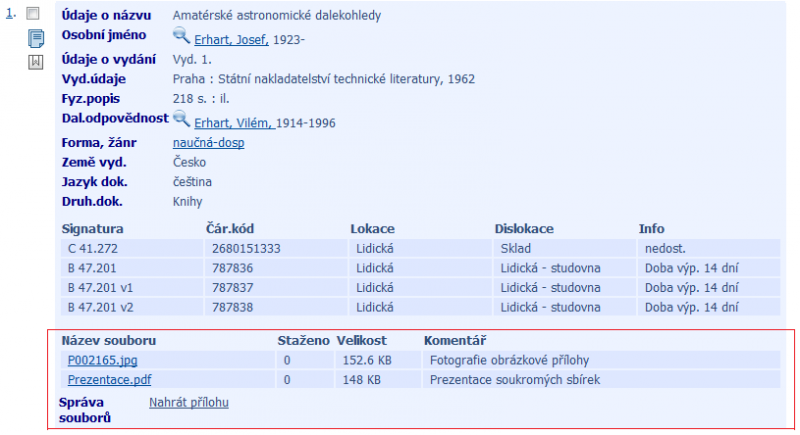 Prezentace souborů je možná skrze zobrazovací formát záznamu ve webovém rozhraní Ipac. K dipozici je i přesný počet stažení každého jednoho souboru.