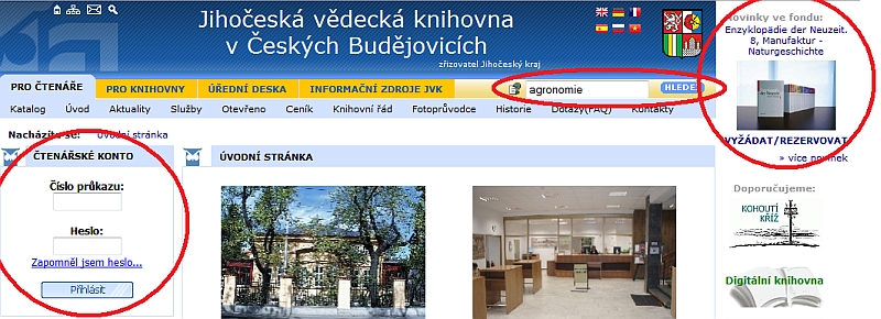 Novinky ve fondu – na stránky knihovny lze zapojit zobrazování novinek ve fondu včetně náhledu obálky. Kliknutím na odkaz se novinka zobrazí v IPAC ARL v podrobném zobrazovacím formátu a je možná okamžitá rezervace.